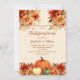 A soft beige background. Decorated with pumpkins and orange and yellow flowers. Personalise and add the party details.