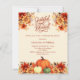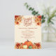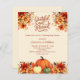 A soft beige background. Decorated with pumpkins and orange and yellow flowers. Personalise and add the party details.