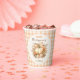 Thanksgiving Dinner Paper Cups in elegant modern farmhouse style, featuring floral pumpkins and gingham in soft orange, cream, and green on the cream background. Easily personalise the text. - Kate Eden Art