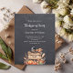 A faux rustic chalkboard as background. Decorated with pumpkins, kitchen utensils, a rustic wooden sign with the text: Thanksgiving Feast. Personalise and add the party details.