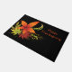 Doormat shown with a black background with a festive autumn fall leaves print.
