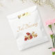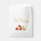 Rustic Autumn favour bag, with a red and gold fall leaves design on a white background. With elegant gold script typography lettering, you can add your own information. Great for saying thank you to your guests at your Thanksgiving or harvest dinner celebration.