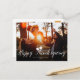'Happy Thanksgiving' Autumn/Fall Leaves Silhouette Modern And Trendy White Script Calligraphy Photo Double Sided Holiday Postcard.