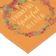 This beautiful table runner features the text "thankful grateful blessed" inside and colourful fall wreath. The design offers light yellow handwritten style text on an orange background.