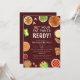Gather your loved ones for a fun-filled Thanksgiving Party! This stylish invitation card features a frame illustrating a variety of mouth-watering Thanksgiving favourites—turkey, pie, mashed potatoes, and more—surrounding the words 'Get Your Fat Pants Ready'.