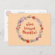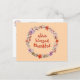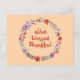 Hand painted watercolor brush lettering flower wreath thank you card with "Alive Blessed Thankful" message on the front and editable message on the back. The perfect sayings to put in a card or send in a text to friends, family or colleagues.