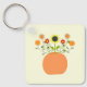 This fun double sided Thanksgiving keychain features a digital art image of a floral arrangement of pretty flowers inside an orange coloured pumpkin vase. The centrepiece of the bouquet is a beautiful big yellow sunflower with large pale green leaves. Either side of the sunflower are a selection of other blooms including red rudbeckia, pale peach coloured Zinnias and pretty orange and yellow bicoloured Gaillardia. All flowers are supported by their green stems and leaves. The petal colours are designed to match the colours of fall. There is custom text so you can personalise this design with a message.