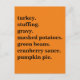 What’s your favourite Thanksgiving dinner food? Turkey, stuffing, gravy, mashed potatoes, green beans, cranberry sauce, pumpkin pie? How about all on this a postcard! This card is also customisable and great to send to people for the holidays! Check out this design in other options for men, children, babies and even in totes, sweatshirts and more in the “Thanksgiving Dinner List” collection!