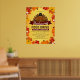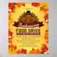 Thanksgiving Food Drive Charity Fundraiser Poster Featuring Turkey, Banner With Pumpkins, Fall Leaves & Canned Food Border Frame. Customise To Your Liking.