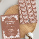 Set the tone for your formal Friendsgiving celebration with this unique Thanksgiving dinner party invitation. The rich autumnal terracotta background features intricate, hand-drawn Talavera-inspired artwork, showcasing delicate flowers and a butterfly in crisp white. Bold white text stands out against the warm tones, and all templates are fully customisable for your event details. Perfect for those hosting a more formal gathering, this one-of-a-kind design is available both as a printed invitation or a convenient digital download, making it easy to share by email, text, or social media.
