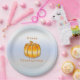 Thanksgiving Golden Pumpkin on Silver Background Paper Plate
