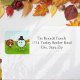 Celebrate Thanksgiving with a laugh! This funny return address label design shows a golf ball character reassuring a turkey that he won’t be sliced. A perfect addition to your envelopes for golfers who love humour, the holiday, and hitting the links.