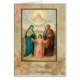 Beautiful traditional vintage image of the Holy Family, Jesus, Mary & st. Joseph with the Holy Spirit & God the Father above and autumn fall leaves as background. All text and fonts can be modified.
