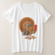 This plus sized women's shirt has a Thanksgiving male turkey with leaves at his feet. His tail is fanned out and has Autumn coloured feathers in browns, oranges, and blue.