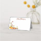 This folded name place card is shown in basic white with a Thanksgiving fall autumn leaves graphic print.