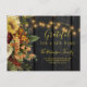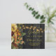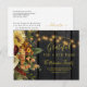 Modern rustic elegant Thanksgiving family moving announcement postcard featuring a beautiful autumn fall floral botanicals bouquet and a gold chic typography script over a dark brown barn wood background.