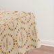 This awesome tablecloth features a digital art image of a series of Oak leaves in shades of red, orange, yellow and green arranged in a circle around some text with alternating letters of red, yellow, orange and green that says Happy Thanksgiving Day.
