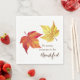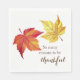 This paper napkin is shown with a festive Autumn leaves print with a phrase 'So many reasons to be thankful.