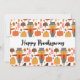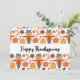 Thanksgiving card with a seasonal fall pattern, Corn, mushrooms and flora. Along with turkeys and scarecrows to honour the Thanksgiving tradition.