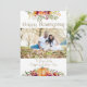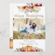 Thanksgiving photo card with pumpkins and leaves, one horizontal and one vertical photo at the back