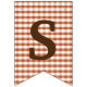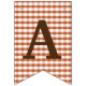 This bunting banner is a perfect complement to the Thanksgiving dinner party invitation set. The design features bunting banner pieces with letters on each one spelling out "Giving Thanks", with slices of pie, fun chequered patterns. The background is plaid, with the colours being orange and brown. Your guests will enjoy this whimsical banner.
