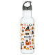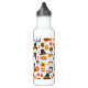 Water bottle with a seasonal Thanksgiving pattern. Featuring whimsical pilgrims, turkeys, pumpkin pie and other various autumn themed elements.