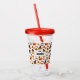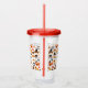 Acrylic tumbler with a seasonal Thanksgiving pattern. Featuring whimsical pilgrims, turkeys, pumpkin pie and other various autumn themed elements.