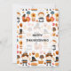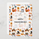 Thanksgiving card with a seasonal Thanksgiving pattern. Featuring whimsical pilgrims, turkeys, pumpkin pie and other various autumn themed elements.