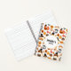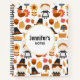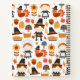 Spiral notebook with a seasonal Thanksgiving pattern. Featuring whimsical pilgrims, turkeys, pumpkin pie and other various autumn themed elements.