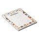 A notepad with a seasonal Thanksgiving pattern. Featuring whimsical pilgrims, turkeys, pumpkin pie and other various autumn themed elements.