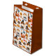 Gift bag with a seasonal Thanksgiving pattern. Featuring whimsical pilgrims, turkeys, pumpkin pie and other various autumn themed elements.