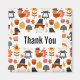 Thank you magnet with a seasonal Thanksgiving pattern. Featuring whimsical pilgrims, turkeys, pumpkin pie and other various autumn themed elements.