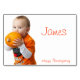 Double-sided Thanksgiving place cards with picture of a baby holding a pumpkin and customisable text. And you can replace the photo with your own photo.