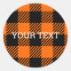 Thanksgiving Plaid Pattern In Black And Orange Classic Round Sticker