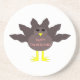 This awesome sandstone coaster features a cartoon of a turkey with big black eyes, a small yellow beak and tail feathers sticking up. The feet are facing in opposite directions making the turkey look goofy. The turkey has pink text on its’ belly that says “Happy Thanksgiving” and it looks like the feathers have been plucked out to reveal the message.