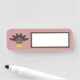 This awesome dry erase name tag features a cartoon of a turkey with big black eyes, a small yellow beak and tail feathers sticking up. The feet are facing in opposite directions making the turkey look goofy. The turkey has pink text on its’ belly that says “Happy Thanksgiving” and it looks like the feathers have been plucked out to reveal the message.