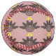This awesome softball features a cartoon of a turkey with big black eyes, a small yellow beak and tail feathers sticking up. The feet are facing in opposite directions making the turkey look goofy. The turkey has pink text on its’ belly that says “Happy Thanksgiving” and it looks like the feathers have been plucked out to reveal the message.