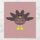 This awesome sheet of wine bottle labels features a cartoon of a turkey with big black eyes, a small yellow beak and tail feathers sticking up. The feet are facing in opposite directions making the turkey look goofy. The turkey has pink text on its’ belly that says “Happy Thanksgiving” and it looks like the feathers have been plucked out to reveal the message.