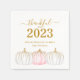 Stylish elegant custom thanksgiving party supply! Celebrate thanksgiving in style with this trendy paper napkin. Design features "thankful for 2023" in gold script typography on a clean white background complemented with gold pink white pumpkins. Personalise this product by adding name of family or your custom text. Easy to customise. Happy Thanksgiving!
