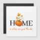 Share the spirit of gratitude with this elegant flat card featuring a rustic watercolor pumpkin replacing the “O” in HOME with the phrase is where we give thanks. Perfect for Thanksgiving greetings, fall celebrations, or heartfelt notes to friends and family. A beautiful way to spread warmth and appreciation during the autumn season.