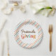 Friends Giving!l Retro font thanksgiving dinner party plates with stripes.