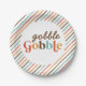 Gobble Gobble!l Retro font thanksgiving dinner party plates with stripes.