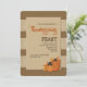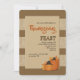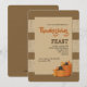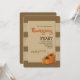 A handsome fall invitation with a burlap and brown stripe background overlaid with a tan layer and embellished with pumpkins, fall leaves and Pilgrim hats. (<a href='https://www.freepik.com/free-vector/background-of-thanksgiving-pumpkin-with-hat_953409.htm'>Designed by Freepik</a>). <br/><br/>The card is easy to customise with your wording, font and font colour.<br/><br/>Not exactly what you're looking for? All our products can be custom designed to meet your needs at no extra charge.<br/><br/>Simply contact us at askcottonlamb@gmail.com.<br/><br/>Coordinating products available: Just ask us!