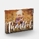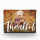 A bold white brush script "thankful" against your horizontal photo makes a perfect Thanksgiving fall decor home item with this thankful script photo block. Also a great grandparent gift!