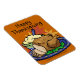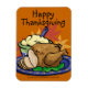 Happy Thanksgiving Turkey Fridge Magnet features our fun artwork digitally created by Traci Van Wagoner of a juicy and tasty turkey on a platter with a heaping bowl of mashed potatoes and fall leaves behind all on a festive autumn orange background. On the top it says, "Happy Thanksgiving". Share the thanks and the fun of the holiday with your friends and family and decorate your home or office this season with our original Thanksgiving Day magnet.