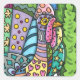 THANKSGIVING TURKEY, PATCHWORK FEATHERS, FOLK ART SQUARE STICKER