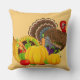 Thanksgiving throw pillow shown with a festive turkey print. Customise this pillow or buy as is.