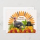 This holiday postcard features a classic Thanksgiving turkey design. A cute design of harvest apples and pumpkins, autumn-hued grass, turkey feathers, and a wild turkey.