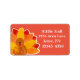 A bright return address label for the autumn season and Thanksgiving featuring a whimsical turkey with bright yellow, orange, and red feathers illustrated with watercolor on a warm red background. You can edit the background colour and text to fit your needs.