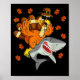 Thanksgiving Turkey Riding Shark Funny Autumn Boys Poster